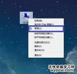 然后選中“計算機”并點擊鼠標右鍵,再點擊“管理”選項,如圖所示