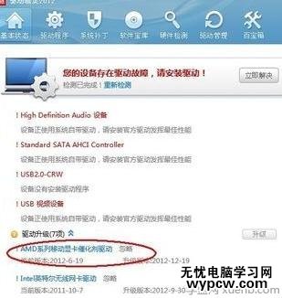 顯卡驅動不正常,可以手動重新安裝顯卡驅動。如果自己沒有顯卡驅動,也不知道具體是什么顯卡的話,可以借助一些第三方軟件。這里以“驅動精靈”為例。首先打開驅動精靈,軟件會自動檢測系統的驅動。等待軟件 檢測完成以后,在首頁找到顯卡,點擊“升級”如圖所示