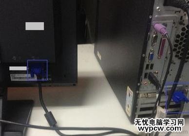 如果檢查顯卡驅動也正常,但就是分辨率不正常。比如原來是 1440*900 的分辨率,現在卻變成了 1280*800 的分辨率。這個原因有可能是連接顯示的數據線松動或線出現問題導致的。這里我們可以嘗試重新插撥下顯示的數據線,先找到連接在顯示器上的數據線,然后把固定數據線的螺絲松動,取下來重新接上,如圖所示