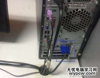 如果還是不行的話,再嘗試插撥連接到主機端的顯示器數據線,如圖所示