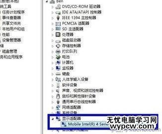 然后在右窗格中點擊“顯示適配器”,檢查是否有嘆號或者問號,如果有說明顯卡驅動不正常。如圖所示