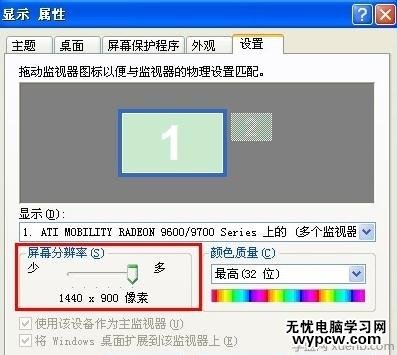 點擊這個屏幕分辨率的拉伸條,挨著試一試,選擇一個最佳的為止。比如我這個適合1440*900的分辨率,更換為別的分辨率就會大大小小的出現圖標變寬或者變窄。