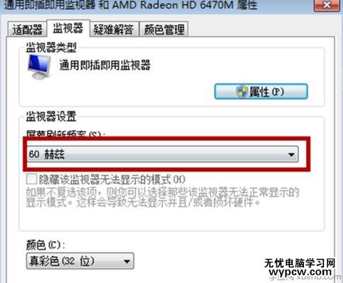 屏幕刷新頻率適當調高一些,(筆記本一般是60)點擊確定,觀察是否解決問題,沒有解決就是硬件問題了