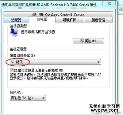 在監視器選項下設置“刷新頻率”,把這里面的數值選擇越大越好,如圖;