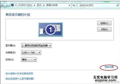 右鍵點桌面空白處,選擇“屏幕分辨率”,然后再選擇“高級設置”;