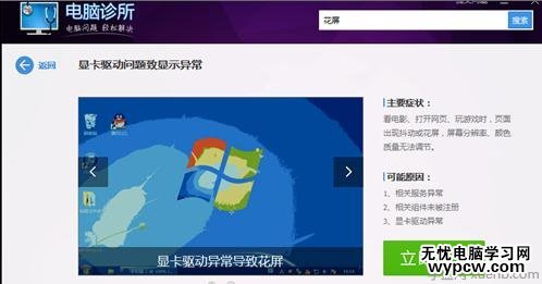 2,打開后直接右上角空白的搜索框里面輸入花屏這兩個(gè)字,就可以找到一個(gè)修復(fù)的方案,因?yàn)榉?wù)開啟比較麻煩,所以直接用這個(gè)工具一鍵修復(fù)就可以了