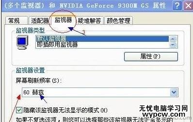 可以看到顯示器的刷新頻率設(shè)置為“60”,這正是造成顯示器屏幕不斷抖動的原因。將新頻率設(shè)置為“75”以上,再點擊確定返回桌面就可以了。