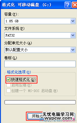 5、先勾選【快速格式化】,然后再點擊【開始】;