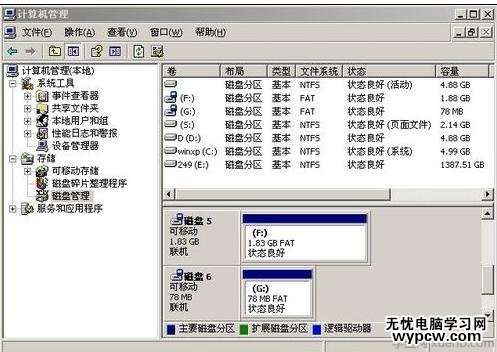 彈出"計算機管理"頁面看到沒有?F盤跟G盤就是我們要找的了.