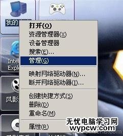 右鍵點擊"我的電腦",找到"管理"這一項,點擊左鍵