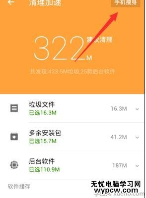 3,另外呢,如果是已經安裝的軟件,我們可以通過軟件搬家來解決,先打開騰訊手機管家——清理加速——手機瘦身
