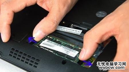 如果你的內(nèi)存插槽僅有一個(gè),那么升級(jí)內(nèi)存就需要使用替換法,將老內(nèi)存替換掉,這就需要先將原有內(nèi)存拆除。而方法很簡(jiǎn)單,內(nèi)存兩側(cè)會(huì)有兩個(gè)彈簧卡扣,用左右手的手指尖將卡扣搬開,內(nèi)存就會(huì)自動(dòng)彈出,然后取下即可。
