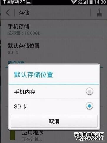 操作:【設置】-【儲存】-【手機存儲】-【存儲位置】-【默認存儲位置】-【SD卡】