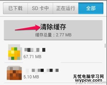 點擊一款列表中的應用程序,如果程序有緩存文件可以顯示大小,直接點擊“清除緩存”選項就可以釋放這些緩存文件占據(jù)的空間