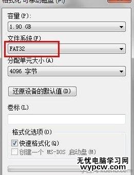 隨后打開“我的電腦”,在新增加的盤符上右擊,選擇“格式化..."菜單項,在打開的”格式化“窗口中將文件系統設置為”FAT32“,最后點擊”開始“按鈕進行操作。格式化完成后,就可以再次裝回手機,測試能否正常使用。