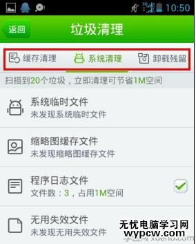 一鍵清理完成后,可以選擇“垃圾清理”對緩存、系統、卸載殘留實現進一步的清理工作。清理時間根據你手機的系統文件數量存在不同,可能實現較長,需要耐心等待掃描,完成后點擊清理。