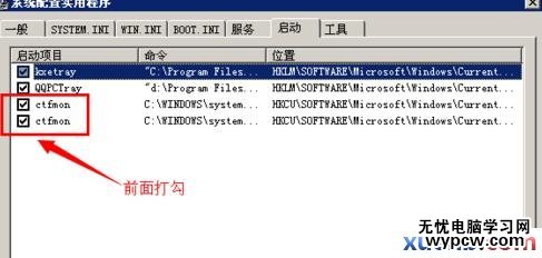 然后把ctfmon前面的勾打上,點擊確定后關閉對話框。到了這里看下是否解決了你的問題,如果沒有,接著下面操作;