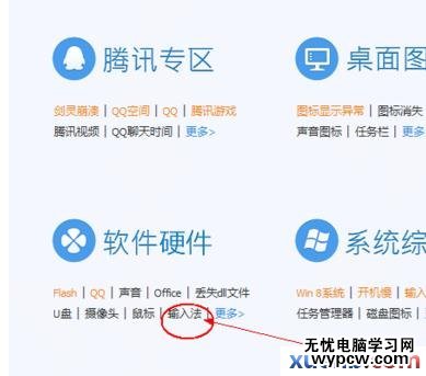 然后在各種電腦毛病中選擇輸入法一項,點擊打開。