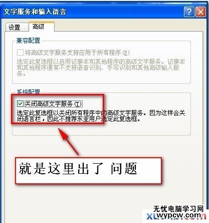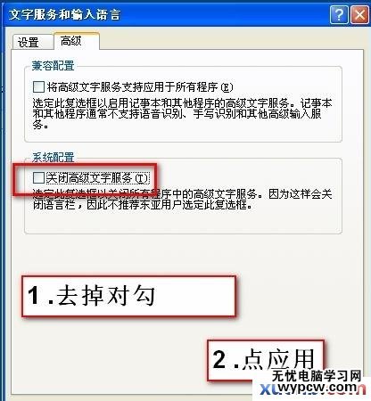 點高級---去掉關閉高級文字服務的對勾