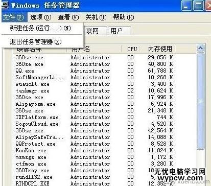 3、繼續按下"ctrl + alt + delete"打開任務管理器,選擇"文件"然后選擇"新建任務",如下圖。