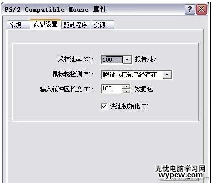 在“設備管理器”對話框中找到“鼠標和其它指針設備”中的“ps/2 Compatible Mouse”一項并雙擊,在出現的屬性對話框中選擇“高級設置”標簽,然后將“快速初始化”前面的鉤去掉,便能夠解決鼠標指針失速的問題。