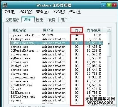 點一下“CPU”按CPU占用率排一下序,就可以看到那個程序占用CPU大的。