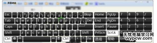 接下來我們看到屏幕鍵盤的數字鍵已經打開了,這樣我們就可以開啟或者關閉屏幕鍵盤的數字鎖定鍵,來決定是否輸入數字。