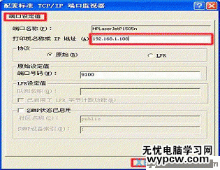 說(shuō)明打印機(jī) IP 地址與網(wǎng)絡(luò)端口 IP 地址不同,進(jìn)入打印機(jī)驅(qū)動(dòng)程序?qū)傩越缑妫x擇“端口”選項(xiàng)卡,點(diǎn)擊“配置端口”按鈕,在“端口設(shè)定值”窗口中,確認(rèn)設(shè)定的 IP 地址和打印機(jī) IP 地址一致,如果仍然故障,說(shuō)明打印機(jī)內(nèi)置打印服務(wù)器可能有故障,需要維修打印機(jī)。