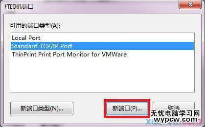 3.選擇端口,點(diǎn)擊添加端口,選擇Standard TCP/IP Port后點(diǎn)擊新端口。