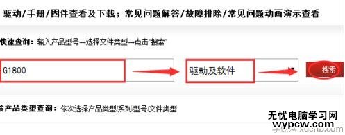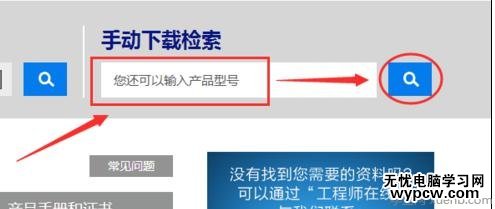 在下載頁面中,有兩種檢索方式:手動和自動。這里選擇手動方式。在手動下載檢索文本框里輸入打印機的型號,型號在打印機的可以找到。然后點擊查找圖標,進行查找。