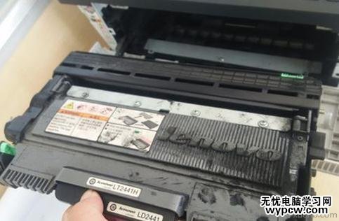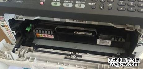 打開前蓋,取出墨粉盒,更換墨粉,換完墨粉先別急著把蓋子蓋上。
