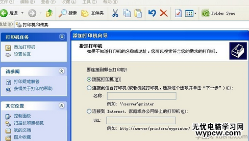 2、局域網內的其他電腦連接到打印機。請依此打開控制面板、打印機和傳真、點擊右側的添加打印機,并按下面圖示步驟完成連接。