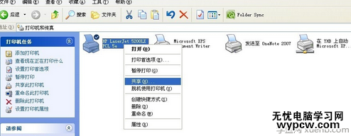 1、將打印機連接到局域網內的一臺電腦,并依次打開控制面板、打印機和傳真、右擊需要共享的打印機并選擇共享,打印機共享后會在打印機上顯示一個平攤的手掌。