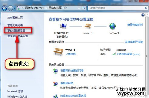 第三步、 點擊左側“更改適配器設置”;