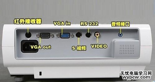 2、如何接駁投影儀的端口也有講究,盡量查看設備的說明書。比如這款投影儀不能將筆記本輸出的連接插入VGA out接口,而要接在VGA in接口。接錯了,怎么設置也不會出圖像的!