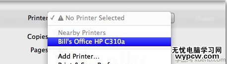 5、要從打印表單中添加臨近的打印機:請從“打印機”彈出式菜單中選擇您想要的打印機。
