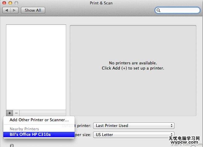 提示:要直接打開“添加打印機”對話框,請點按添加 (+) 按鈕。