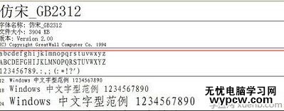 3、雙擊選中的字體圖標,在打開的對話框中單擊“打印”按鈕,看輸出的打印結果是否正常。比如你用的是仿宋體,看下圖。假如打開不正常,可能是該字體已損壞,要對此字體進行重新安裝。