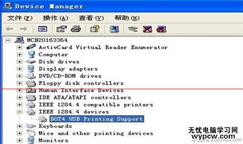 2. 鼠標右擊我的電腦 , 打開管理 點擊設備管理器 , 找到 DOT4 USB Printer Support,如下圖2