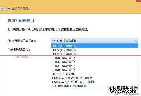 5、然后選擇相應的打印機端口