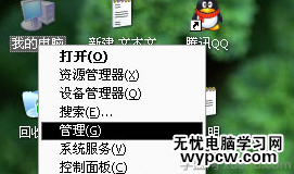 在桌面選中“我的電腦”,鼠標右鍵選擇“管理”;