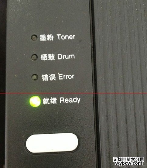 第二步,一手按住打印機復位鍵,另一只手開機