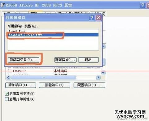 3、在新彈出窗口選擇“Standard TCP/Port",然后選擇“新端口類型”如下圖