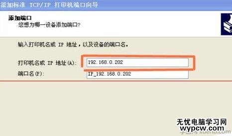 5、在“打印機名IP地址”里輸入新打印機的IP地址。然后選擇下一步。如下圖