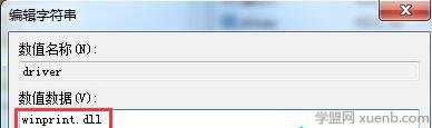 4、點擊“winprint”,在窗口右側單擊右鍵-新建字符串,命名為“driver ”,然后雙擊打開“driver ”,將其數值數據修改為“winprint.dll”即可。