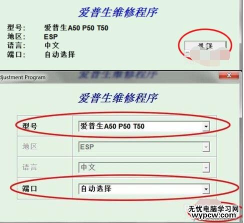 2、在下面的步驟中,選擇型號P50,端口再選擇:自動選擇,再點:特定項目維修模式。