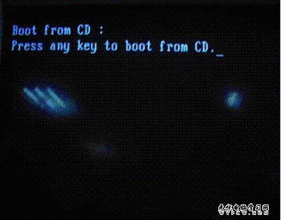 2.選擇光驅(qū),幾秒后,屏幕上會出現(xiàn)“Press any key to boot from cd…”的字樣,此時需要按下鍵盤上的任意鍵以繼續(xù)光驅(qū)引導(dǎo)。如下圖所示: