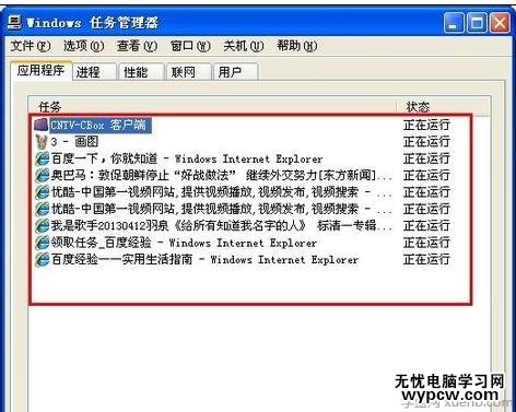 也可以在“任務(wù)管理器”中“應(yīng)用程序”選項(xiàng)卡中結(jié)束用不到的程序