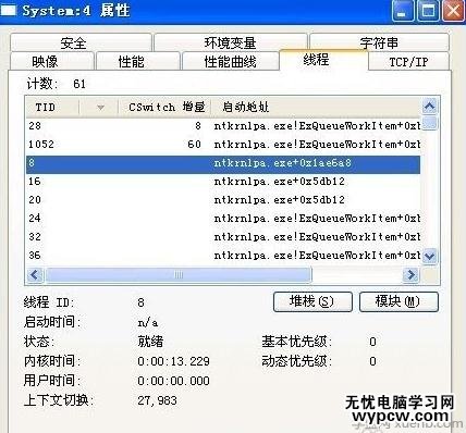 解決方法:用Process Explorer工具查看system的線程,看看哪些線程最活躍,CPU占用率最高,根據(jù)文件名判斷是哪個(gè)驅(qū)動(dòng)程序需要使用