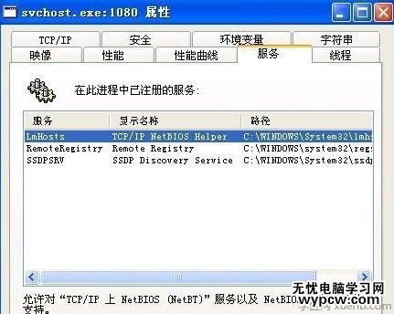解決方法:用Process Explorer工具查看cpu使用率過高的svchost.exe進(jìn)程中的已注冊服務(wù),然后足一這些停止服務(wù)來排查是哪個(gè)服務(wù)出問題